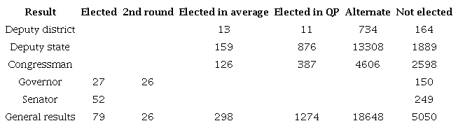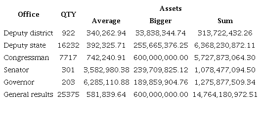 The greatest asset is realized for those candidates for governorships and senator, respectively, followed by the heritage of candidates for deputies of positions and state and district deputies, as the table below.