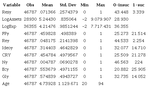 The tabulation of descriptive results shows that both the applicant's goods and the expense contracted by the candidate during the campaign are higher in situations where the candidate was successful in the election campaign, as shown in Table 6.