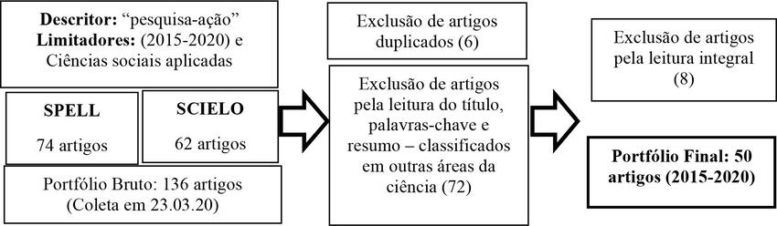 A seguir são expostos o referencial teórico sobre a pesquisa-ação e os procedimentos metodológicos utilizados no estudo. Por fim, apresentam-se os resultados construídos a partir da revisão sistemática da literatura de um portfólio de cinquenta artigos e as considerações finais do estudo.
