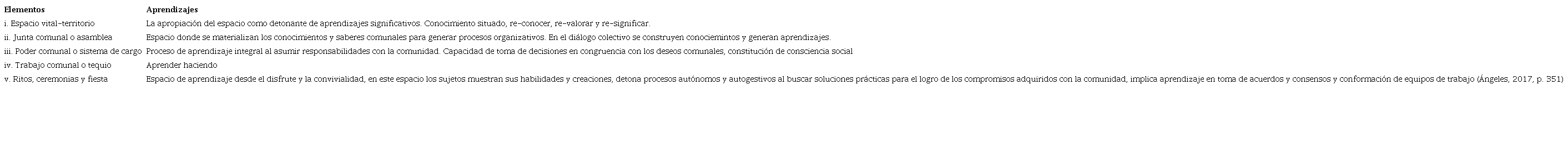 Esa otra localización está representada en la noción de a comunalidad –creada por separado de acuerdo con Guerrero (2015) por Floriberto Díaz y de Jaime Martínez Luna- que como tal identifica el territorio y el espacio común; el trabajo colectivo; la autoridad o los espacios de acuerdo (asamblea) y la fiesta, como elementos constitutivos –inmanentes- de la comunidad. Es decir, tal como la entiende Arturo Guerrero (2015, p. 115) trata de los “pilares, los principios y las veredas no están aparte, en un mundo ideal platónico, sino que conforman el horizonte dentro del cual se formula, recuerda y ejecuta lo consensuado, lo tenido por correcto”. El trabajo colectivo como obligación hacia la comunidad (tequio), el trabajo colectivo como servicio hacia los otros (apoyo mutuo o mano vuelta) y las fiestas o las ceremonias es la expresión del don comunal en los que se recrea el Nosotros (GUERRERO, 2015, p. 117) En este sentido, la comunalidad, será comprendida como un componente estructural que articula los diferentes aspectos sociales de vida implicando “formas de estar, vivir, entender, hablar y habitar en un espacio común hecho territorio” (ÁNGELES, 2017, p. 90). Y como tal implica, en su proceso de creación y recreación, la generación de conocimientos como activos generados en la experiencia comunal y por tanto pertenecen al colectivo. Y añade que “la comunidad en comunalidad es una construcción social que nos lleva a una relación vinculante, de reciprocidades indeterminadas y quizás infinitas, puesto que hay una configuración del plano societal como una relación interdependiente, en donde lo que hace posible la relación entre los sujetos es lo que pueden aportar al común, con el común y en el común” (ÁNGELES, 2017, p. 90).