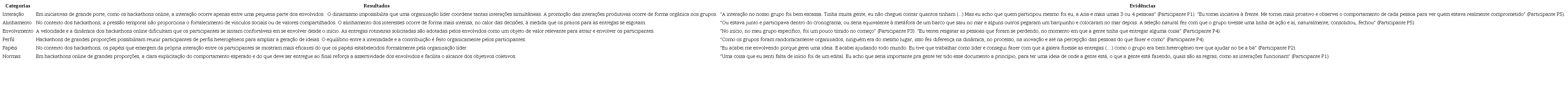 Os resultados desta pesquisa reforçaram alguns dos postulados teóricos construídos na trajetória de estudos sobre a microcoordenação de rede e evidenciaram as principais diferenças existentes no contexto veloz e dinâmico das iniciativas online de grandes proporções. Não obstante, trazem complementações aos estudos recentes sobre a microcoordenação e sobre hackathons no contexto nacional e internacional. Os resultados são sintetizados no quadro 3, acompanhados das evidências coletadas no grupo focal.