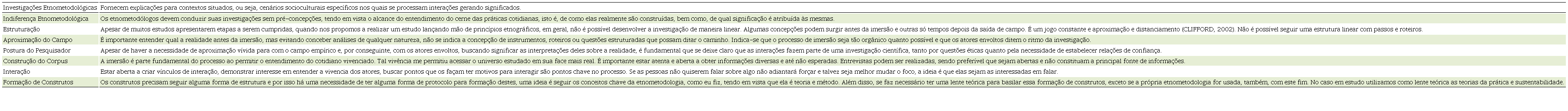 A seguir, na figura 4, trazemos um quadro resumo dos principais pontos a serem levados em consideração na construção de uma investigação usando como método a etnometodologia.