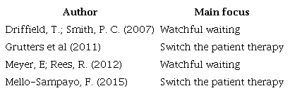 DRIFFIELD, T.; SMITH, P. C. A real options approach to watchful waiting: theory and an illustration. Medical decision making, v. 27, n. 2, p. 178-188, 2007.