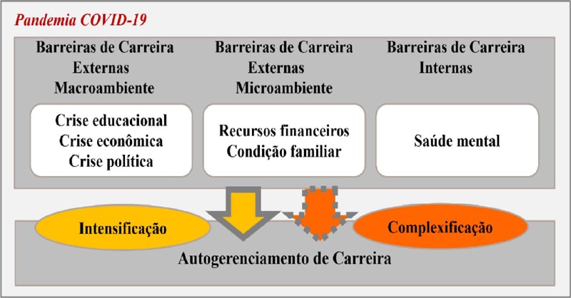 Os estudos mais recentes na literatura sobre carreira reforçam a importância da autogestão da carreira associada com a gestão da própria vida (DI FABIO, 2019) – sendo esta a ideia inerente ao autogerenciamento de carreira. Lent e Brown (2013), a partir dos estudos sobre autogerenciamento de carreira, assumem que barreiras e suportes vivenciados pelos indivíduos, em diferentes dimensões da vida, influenciam mutuamente em processos de carreira – como preparação, adaptação, mudanças e tomadas de decisão. O momento pandêmico constitui-se como um contexto anormal e crítico para os universitários. Logo, indaga-se: dadas as barreiras percebidas e vivenciadas em tal contexto, como os indivíduos vêm gerenciando suas próprias carreiras?