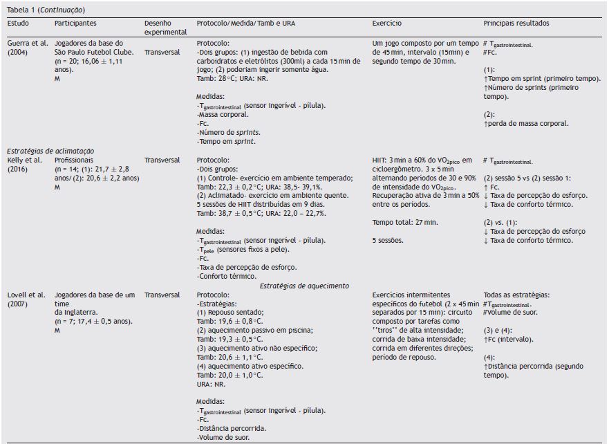 Portanto, o objetivo do presente trabalho foi realizar uma revisão sistemática acerca dos efeitos do estresse térmico ambiental sobre a termorregulação em jogadores de futebol.