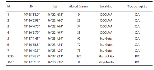 METHODS: The records were obtained: a) from voucher specimens deposited at the Colección Mastozoológica, Instituto de Investigaciones Biológicas, Universidad Veracruzana, and b) by accidentally trapping these mammals in botanical surveys conducted at the El Centro de Investigaciones Costeras La Mancha, Instituto de Ecología A.C. and its surroundings.