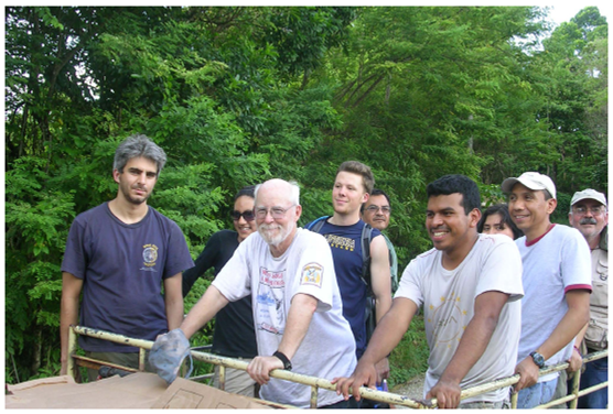 La incansable actividad de Jim ha sido una suerte para muchos, entre ellos yo, que me llevó a compartir una expedición de campo en un área remota en Guatemala, el Cerro San Gil, donde nos repetía cada día "I am an old man now, I cannot do fieldwork as I used to ..." en realidad yo creo era para que no nos sintiéramos tan mal, porque en realidad los que no le aguantábamos el paso ¡¡éramos nosotros!! Y no solo caminaba más, sino que ponía más trampas, capturaba más organismos y, encima, encontraba los casos más extraños e interesantes (aún para Jim después de 50 años de trabajo de campo), como un individuo de Heteromys que tenía en los abazones ... ¡¡ huesos de otro roedor !!