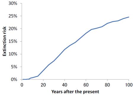 Inconsistencies can arise between the application of IUCN's Redlist criterion E referring to extinction risk assessment and of other IUCN's criteria. Since 1996, southern bluefin tuna (Thunnus maccoyii), has been listed as Critically Endangered by IUCN because of a more than 80 % reduction in population size within the past three generations (Matsuda et al. 1997). However Matsuda et al. (1997, 1998) evaluated that the extinction risk of this species does not satisfy Criterion E (> 50 % within the next 10 years or three generations), but would be classified as Vulnerable because of a more than 10 % risk that it fall below the minimum viable population size (500 mature individuals) within the next 100 years.