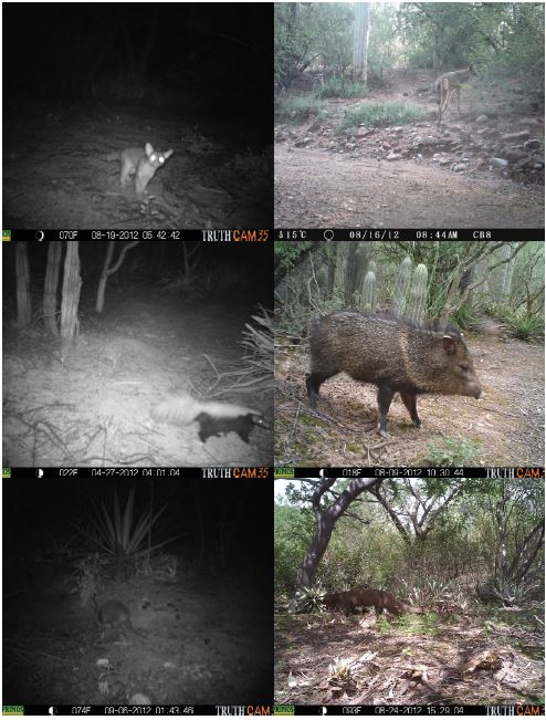 Resulta interesante que para el caso de las especies consideradas medianamente abundantes (33% de las especies), la lista esté dominada por el Orden Carnivora, con seis especies (M. macroura, C. latrans, Nasua narica, S. angustifrons, Conepatus leuconotus y L. rufus). De ellas, el lince (L. rufus) y el zorrillo cadeno (C. leuconotus) fueron las más frecuentemente fotografiadas, aun cuando se podría esperar que por sus hábitos evasivos, el lince fuera menos frecuente y abundante; no obstante, resultó lo contrario. El fenómeno anterior puede relacionarse con la abundancia de presas como los conejos, en particular durante la temporada de lluvias.