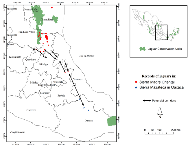 The Sierra Madre Oriental (SMO), the eastern mountain range of México, has been classified as having only medium priority for the long-term conservation and viability of the jaguar in México (Sanderson et al. 2002). This classification was given because the SMO was considered isolated from the rest of the distributional range of jaguars in México (Rabinowitz and Zeller 2010). However, recent studies indicate that the SMO may have significant potential for the conservation of jaguars (Villordo-Galván et al. 2010; Rodríguez-Soto et al. 2011). Thus, characterizing the SMO as a region of limited conservation potential for jaguars may be premature, and could result in well-intentioned conservation priorities that may actually be detrimental for the species, as has happened to other organisms (e. g.Morrison et al. 2012). For example, we are aware of no evidence that indicates that jaguar populations in the SMO are genetically isolated from other populations, which could justify marginalization of the SMO as a viable conservation unit for jaguars in México. Because of the presence of jaguar populations in the SMO, we suggest that the SMO deserves attention to evaluate both the real status of jaguar habitat and the connectivity among populations in this region.