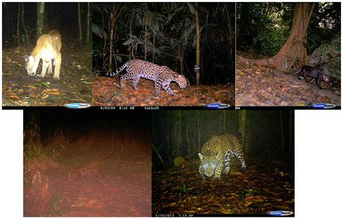 En la selva de los Chimalapas, se han registrado previamente 149 especies de mamíferos, entre ellos 20 especies del Orden Carnívora con cinco especies de felinos: dos grandes depredadores, Puma concolor y Panthera onca, y tres mesodepredadores: Leopardus pardalis, Leopardus wiedii y Herpailurus yagouaroundi (Lira-Torres et al. 2012). Sin embargo, las poblaciones de estas especies sobre todo las especies mayores se encuentran sumamente amenazadas por la pérdida de su hábitat, la disminución de sus presas y su cacería provocada por el conflicto con la ganadería extensiva (Lavariega et al. 2013; Lira-Torres et al. 2014).