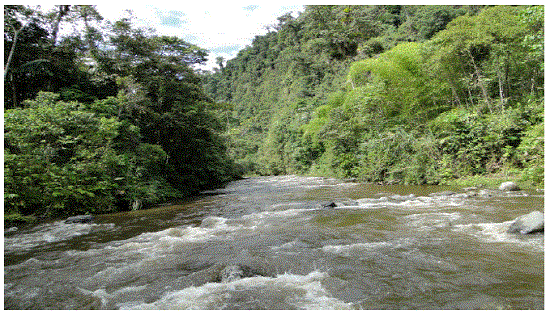 One specimen of I. stolzmanni was collected by Germán Tenecota on 29 March 2016, at Jurumbuno river (-2° 06' 55.32" S, -78° 07' 12.76" W, 1,300 m), Nueva Alianza sector, buffer zone of the Sangay National Park, province of Morona Santiago, Ecuador (Figure 1). The collection area belongs to the Eastern Subtropical plains (Albuja et al. 2012), in the Upano-Zamora ichtyogeographic zone (Barriga 2012). In the collection site, the Jurumbuno river measures approximately 12 m wide by 1 m deep (Figure 2). The specimen was caught with a 20-pound net with 20-mm mesh-size. Several fish species have been captured in the same site, including sardines (Astyanax spp.), curundas (Lebiasina elongata), bocachicos (Prochilodus nigricans), preñadillas (Astroblepus festae), carachamas (Chaetostoma breve), barbudos (Rhamdia quelen), viejas (Aequidens tetramerus) and chuvis (Crenicichla sp; F. Anaguano-Yancha, unpublished data).