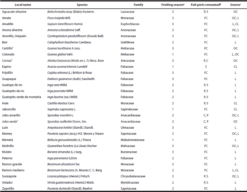 We thank the National Council for Science and Technology of Mexico (CONACYT) for the grant given to the first author for doctoral studies. Idea Wild and El Colegio de la Frontera Sur (ECOSUR) provided partial funding for this project. ECOSUR's Geographic Analysis Lab, Bromatology Lab, and Herbarium facilitated equipment and infrastructure for the study. The Instituto Politécnico Nacional (IPN) provided part of the field equipment. We are very grateful with the residents and guides of ejidos Playon de la Gloria and Reforma Agraria for their help and hospitality during the fieldwork: R. Jiménez, A. Rodríguez, B. Hernández, C. Chan, C. Hernández, and Y. de la Rosa. Thanks to our colleagues who helped to improve this manuscript in different ways: M. González, M. Martínez Ico, M. Ishiki, G. Pérez Escobar, J. R. Vásquez, Y. Martínez, G. Martínez, and R. Velázquez.