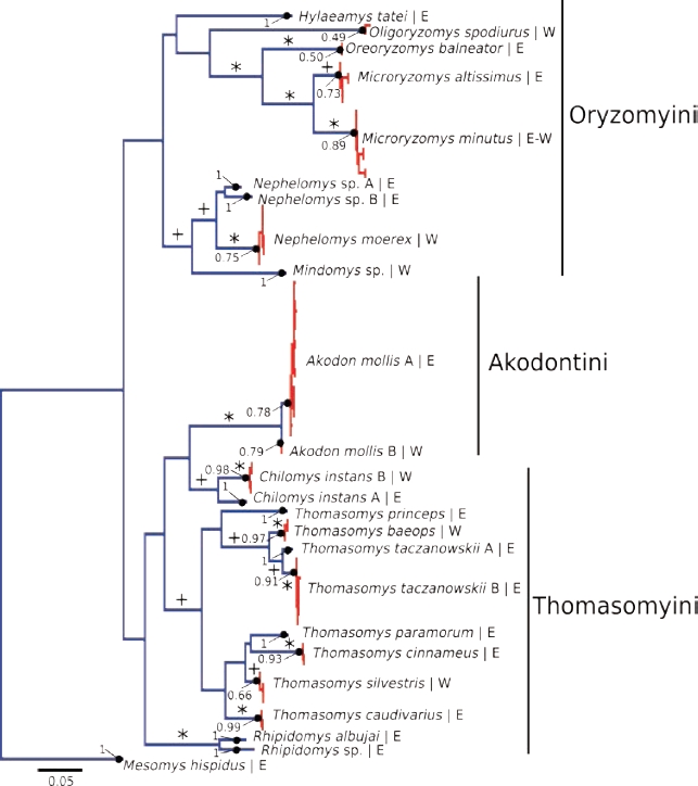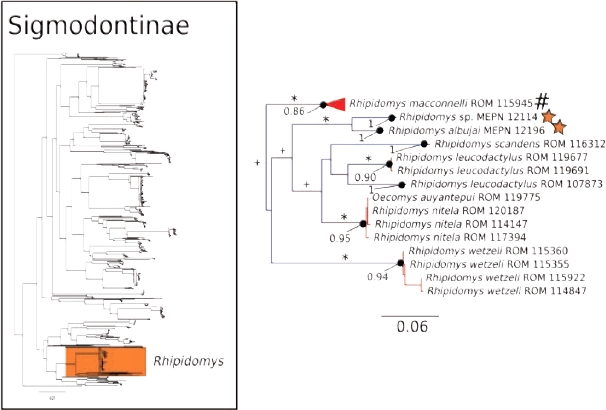 Weksler, M.. 2006. Phylogenetic relationships of oryzomine rodents (Muroidea: Sigmodontinae): separate and combined analyses of morphological and molecular data. Bulletin of the American Museum of Natural History 296:1–149.