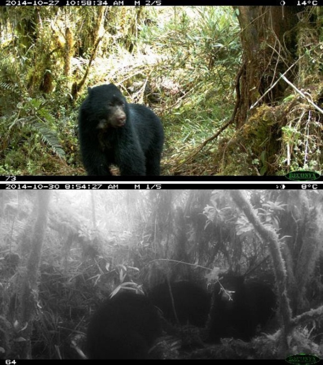 Horn, R. van, R., Appleton, and J., Amanzo. 2014. Andean bears in two peruvian forests are rarely photographed with meat. International Bear News 23:20-22.