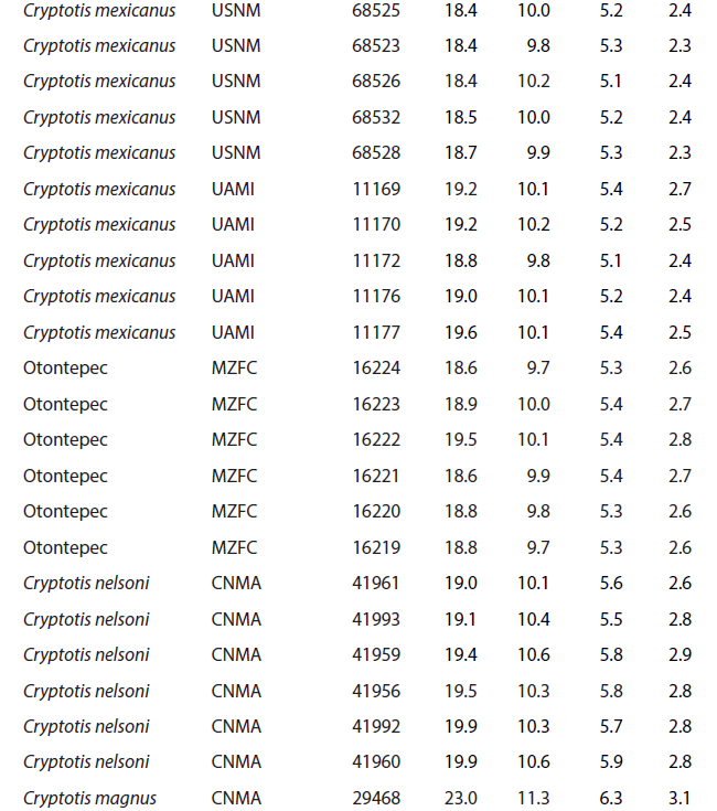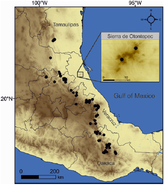 Financial support for fieldwork was provided by Fundación Pedro y Elena Hernández A. C. We thank A. Garrido, U. O. García-Vázquez, M. Trujano, J. C. Sánchez García and A. Jhosefat for all the logistic support in the field. We also thank Y. A. Gómez-Jiménez for his assistance in depositing the specimens in the MZFC-M. We thank the following curators and collection managers for access to the facilities and specimens included in Appendix 1: F. A. Cervantes and Y. Hortelano (CNMA); R. M. Timm (KU), J. Ramirez-Pulido and N. González-Ruíz (UAMI); and S. Peurach and N. Woodman (USNM).