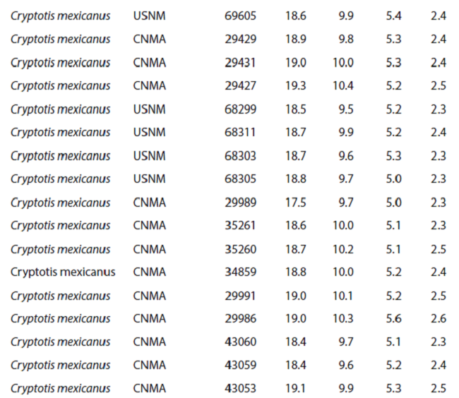 Guevara, L., and F. A., Cervantes. 2014. Molecular systematics of small-eared shrews (Soricomorpha, Mammalia) within Cryptotis mexicanus species group from Mesoamérica. Acta theriologica 59:233-242.