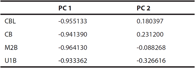 Taxonomic identification. We focused morphological and molecular analyses on the comparison with members of C. mexicanus species group (C. magnus, C. nelsoni, C. mexicanus, and C. phillipsii) because of their greater similarity in pelage coloration, body size, size of forefeet and claws to the specimens from Sierra de Otontepec. We recorded the following cranial measurements for quantitative comparisons: condylobasal length (CBL), cranial breadth (CB), breadth of the palate across the second molars (M2B), and breadth across the first unicuspids (U1B). All measurements were taken with a Mitutoyo electronic caliper at 0.01 mm precision under a stereomicroscope (Appendix 1). We performed a principal component analysis (PCA) on the matrix correlation of four cranial variables to describe and evaluate the degree of differentiation among the species of the Cryptotis mexicanus group.