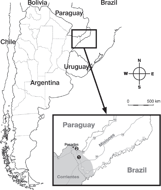 Studies on component communities of ectoparasites of sigmodotines are not abundant worldwide, and Latin America is not an exception. Most of the studies were conducted in Brazil and Argentina, and in the last country, researches were concentrated in Buenos Aires Province (Linardi et al. 1991; Barros-Battesti et al. 1998; Lareschi et al. 2007; Lareschi and Krasnov 2010; Sponchiado et al. 2015; Liljesthröm and Lareschi 2018). Despite the biological relevance of northeastern Argentina, only a few ectoparasite species have been reported associated with sigmodontines, and there are not ecological analyses characterizing ectoparasite component communities (Lareschi 2010, 2011; Lareschi et al. 2016; Pardiñas et al. 2016). Thus, the aim of our study is focused on the ecological study of the communities of ectoparasites of rodents of the subfamily Sigmodontinae in southern Misiones Province in northeastern Argentina.