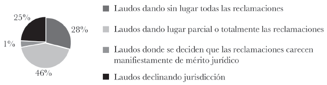 Estos resultados son consistentes con los presentados por el CIADI en su Informe Estadístico 2015-1, los cuales se muestran en la gráfica 3, a pesar de que se incluyen los resultados del Mecanismo Complementario y hay algunas diferencias en la forma de llevar la estadística.27