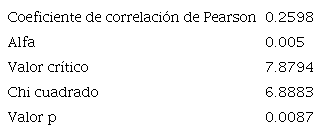 En el cuadro 4 se muestran los resultados del estudio estadístico de la correlación e independencia entre la integración de los tribunales, tomando en cuenta la nacionalidad de los árbitros, y los “resultados ganadores” en las controversias entre los países desarrollados y países en desarrollo. Se puede observar que el valor del coeficiente de correlación de Pearson32 indica una baja correlación entre esas dos variables. Además, el valor del estadístico chi cuadrado cae fuera de la región crítica. Por lo tanto, se acepta la hipótesis nula de independencia entre la composición de los tribunales y los resultados ganadores en las controversias entre los países desarrollados y los países en desarrollo, con un nivel de significación de 0.005. Además, puesto que el valor p es mayor que alfa, se concluye igualmente que se acepta la hipótesis nula.33