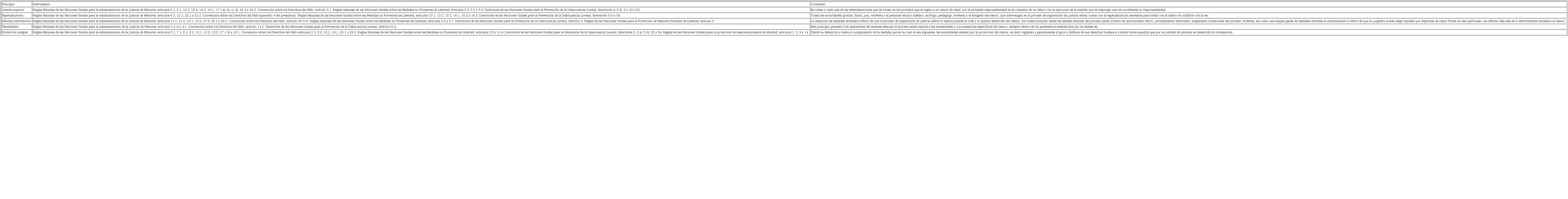 En México estas directrices se han internalizado de manera paulatina estableciendo como eje rector de la justicia penal para adolescentes el principio de interés superior del adolescente, desarrollando el andamiaje necesario para la implementación de un sistema nacional que garantice los derechos humanos y procesales de los adolescentes y al mismo tiempo cumpla con los principios de mínima intervención, flexibilidad y protección integral.