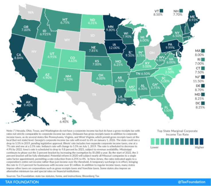 Cabe señalar que las empresas creadas bajo las leyes de cualquiera de los 50 estados (y el Distrito de Columbia), generalmente, están sujetas al ISR corporativo de los EUA sobre sus ingresos obtenidos en todo el mundo; es decir, sobre una renta mundial. El ingreso gravable de dichas personas morales se obtiene al sumar los ingresos brutos menos las deducciones permitidas.21