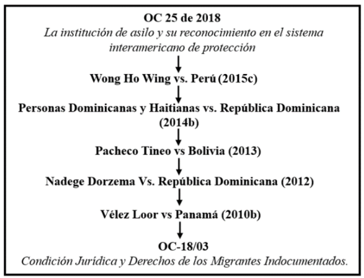 A partir de lo anterior se estableció que la Corte IDH ha sentado precedentes de imperativo cumplimiento para los Estados parte de la Convención en materia de las garantías mínimas al debido proceso legal que se les deben otorgar a los migrantes, tanto en procesos judiciales como administrativos, sumado al acceso un recurso adecuado y efectivo en situaciones de deportación, expulsión, privación de la libertad, solicitud del reconocimiento del estatuto de refugiado y devolución con un enfoque diferencial hacia los niños, niñas y adolescentes.
