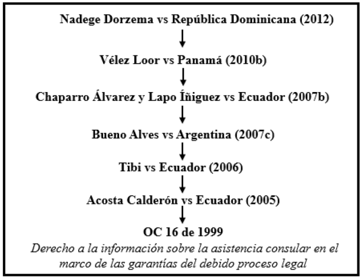 Por último, en el caso Nadege Dorzema vs. República Dominicana determinó que los extranjeros se encuentran muchas veces detenidos en un medio social y jurídico diferente, y con un idioma que desconocen, por lo que el derecho a ser asistidos a través de un cónsul garantiza que exista un debido proceso en igualdad de condiciones frente a los nacionales y goce de ambientes de detención compatibles con el respeto a la dignidad de las personas.71