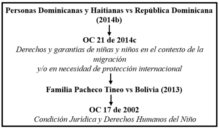 En casos contenciosos como Pacheco Tineo vs. Bolivia, se ha establecido que se debe tomar en consideración el corpus juris en materia de protección de estos, a través de la Convención sobre los Derechos del Niño, la cual reconoce la oportunidad que tienen de ser oídos y participar activamente en todo procedimiento judicial o administrativo y su derecho a solicitar el estatuto de refugiado conforme a los procedimientos internacionales e internos de cada Estado, respetando su interés superior en todas las decisiones.78