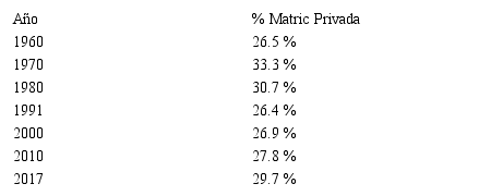 Finalmente, hemos demostrado que el salto hacia la privatización de la educación secundaria se dio en los años sesenta y de allí en más las tasas de escolarización en el circuito público se mantienen en un porcentaje estable (alrededor del 70 %). Sin embargo, hay heterogeneidad entre las diferentes jurisdicciones.