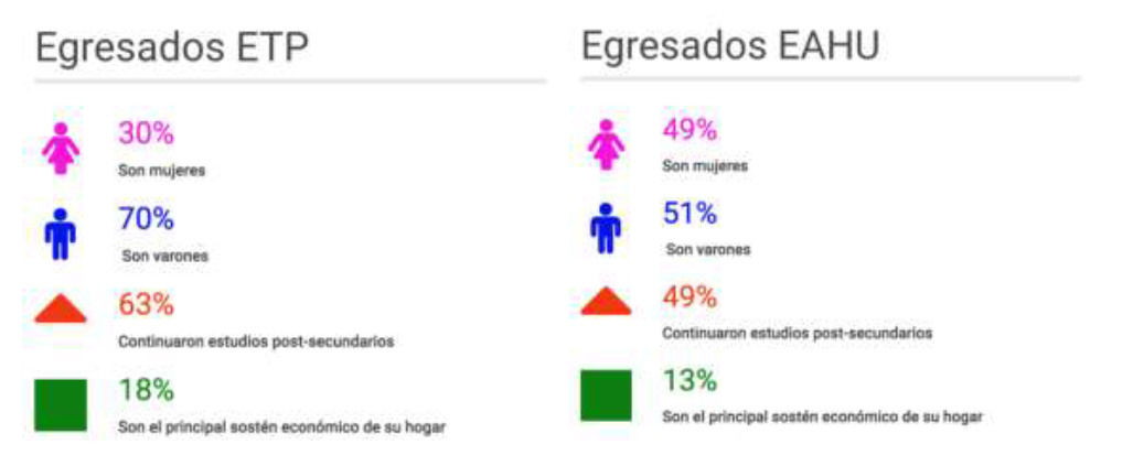 Operativamente, de aquí en más nos referiremos a los Egresados ETP y a los Egresados EAHU para aludir a cada uno de estos dos grupos de jóvenes con estudios secundarios completos.