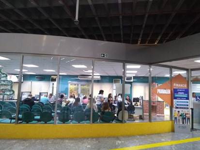 Las fotografías anteriores, tomadas durante el trabajo de campo, sacan a la luz el espacio de una gran universidad privada de São Paulo, situada en las proximidades de una estación de metro. Desde los torniquetes de entrada, hasta las amplias rampas, pasando por el público mayoritariamente femenino y a veces de edad avanzada, son preciosas pistas sobre las características sociales del público atendido. La presencia de una agencia privada de préstamos financieros en el lobby de las IES sugiere el progresivo paso a manos de instituciones del sector financiero del control de los préstamos universitarios y el debilitamiento de FIES y ProUni en los últimos años.