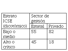 Analizar los efectos diferenciales del sector de gestión desde esta articulación entre formas de escolarización, ampliación del contexto de transmisión y segmentación bajo la forma de la extensión de la diferenciación institucional ofrece precisión al estudio de las relaciones entre desigualdades sociales y desigualdades educativas. Sobre todo si se considera a las condiciones institucionales en tanto configuración resultante de atributos de distinto origen que, por efecto de la ampliación del contexto de transmisión, adquieren un peso distinto; esto es el valor del capital material y cultural o del perfil de los estudiantes según ISTE puede adquirir un valor relativo diferencial.
