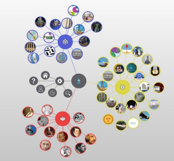 La Figura 1, muestra la red de contenidos de Creativa Monumento. En la misma, el nodo central aporta una descripción general y enlaza cuatro nodos secundarios: Opciones de Acceso, Itinerarios Creativos, Obras Abiertas y Constructores de Ciudadanía.