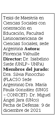 Esta tesis pretendió aportar a los escasos (pero crecientes) estudios realizados sobre enseñanza de la Historia en el nivel secundario en la Argentina. El análisis realizado no tuvo pretensión de generalización sino el afán de señalar algunas tendencias que se vislumbran con profundidad y alcances diversos. Hemos identificado una serie de especificidades en la enseñanza de la Historia y hemos recogido las principales problemáticas que enfrentan lxs docentes en la práctica. Esta lectura nos permite postular que las eventuales tareas de producción de conocimiento didáctico especializado deberían partir de experiencias significativas que llevan adelante lxs profesores en las escuelas, pues allí se ensayan algunas respuestas a los problemas de enseñanza de esta disciplina, que contribuyen a comprender la sociedad a partir de conceptos provenientes del campo de la Historia, brindando a los estudiantes criterios y herramientas con las que se construye el conocimiento histórico. Reconocer ese saber docente, no significa convalidar todas las acciones que se realizan en las aulas, sino tomarlas como punto de partida para pensar alternativas y propuestas de formación. Generalmente, ese saber se pierde en la cotidianeidad escolar y es considerado como un conjunto de anécdotas de escaso valor. Más aún, esos “haceres ordinarios” son pensados como reiteraciones prácticas insignificantes y vulgares, como versiones deformadas de la Historia inscripta en la normativa (Chartier, 2000). Y, sin embargo, es parte esencial de las prácticas escolares.