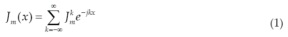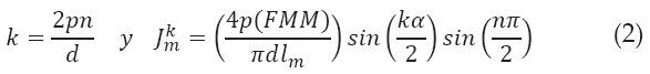 La distribución de la FMM total del imán del rotor se puede expresar en una serie de armónicos de Fourier que se expresan de forma compleja como sigue