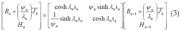 La solución de las ecuaciones de Maxwell en cualquier capa n , usando las cantidades de campo normal y tangencial Bz y Hx produce la siguiente solución general que se expresa en forma matricial