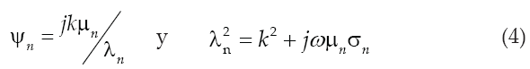 Las propiedades del material de la capa n: permeabilidad μ, y conductividad σ, junto con la frecuencia w, se incluyen en las constantes del campo