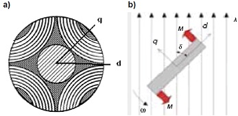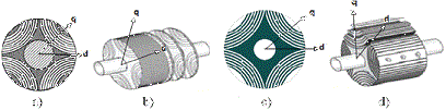 En cada una de las figuras, se indican las direcciones de los ejes directo (eje d), y cuadrático (eje q), que identifican la dirección de mayor permeancia y de menor permeancia, respectivamente.