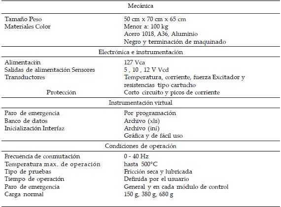 Por lo tanto, una de las alternativas es el diseño de máquinas tribológicas, que ayuden a integrar sistemas que sean capaces de caracterizar variables importantes como el coeficiente de fricción, presión de contacto, temperatura, tasa de desgaste, ciclos de trabajo, etcétera. Actualmente se pueden encontrar sistemas tribológicos disponibles comercialmente (APD-500, 2009; Shaffer, 2013), sin embargo, su costo es muy elevado y esto es un impedimento para su adquisición. Por otra parte, la integración mecatrónica, al ser una síntesis de áreas de la ingeniería mecánica, eléctrica, computación, electrónica y control, se aplica para el desarrollo de máquinas para pruebas de desgaste con fines de investigación.
