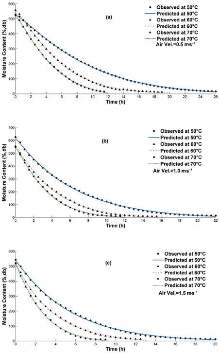 Although, it was found in literature that Logarithmic model had produced good fitting in predicting pineapple drying (Kingsly et al., 2009), results with data from the high precision laboratory showed that the fitting was not appropriate therefore the model was excluded.