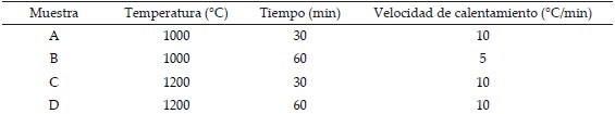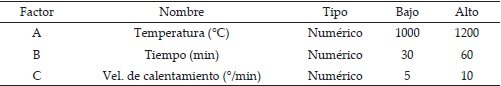 Las fracturas sumergidas en la solución se calcinaron en un horno tubular marca Thermolyne modelo 59300 con un flujo de Ar de 200 ml/ min a una temperatura de 660°C por 1 h, con una velocidad de calentamiento y enfriamiento de 5°C/min. Las muestras obtenidas se inspeccionaron y analizaron químicamente en un microscopio electrónico de barrido (MEB) y espectroscopia de energía dispersiva de rayos-X marca JEOL JSM 6490LV/EDAX. Finalmente, se realizó una corrida en MINITAB de un diseño de experimentos 23 con valores obtenidos previamente, con la finalidad de conocer las interacciones de la temperatura, tiempo y velocidad de calentamiento respecto al crecimiento del recubrimiento rico en Ni. La Tabla 1 resume los factores y los valores de los mismos. El crecimiento del recubrimiento sobre las superficies de fractura se llevó a cabo en un horno tubular Thermolyne modelo 59300 con un flujo de Ar de 220 ml/min. Las muestras se inspeccionaron por MEB y EDX para inspeccionar fases e identificar las especies químicas en el recubrimiento.