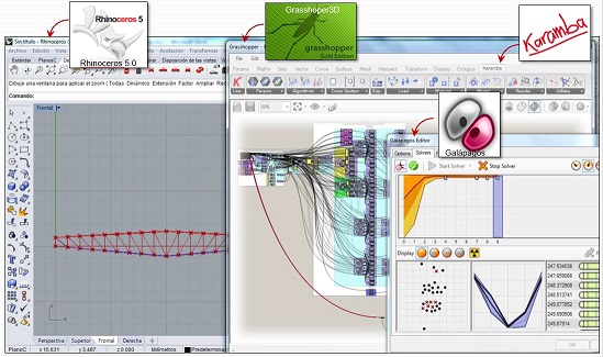 The aforementioned software, complemented with structural analysis plug-ins by means of finite elements, and the implementation of evolutionary methods of optimization by means of genetic algorithms (GAs), make it possible to reach structurally efficient shapes with minimization of materials.