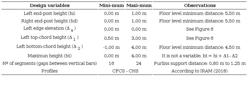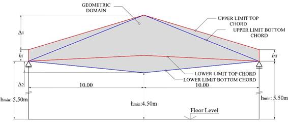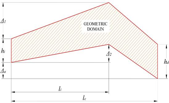 The variable parameters constitute the degrees of freedom of the problem that allows for the definition of the structural geometry. A usual way of expressing them has been indicated in (1). Each of them has a domain defined by a maximum value and a minimum value.
