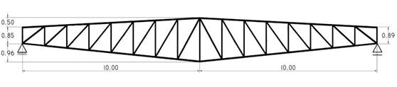 As an example of application to a real case, a Howe truss of 20 m clear span corresponding to a built industrial shed located in the central region of Argentina (Figure 5) was taken for analysis and comparison. The structural engineer analyzed it as a simply supported beam leaning on two columns.