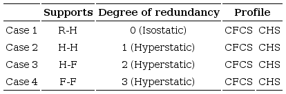 Case 1 (CFCS) is similar to the idealized model in the constructed structure, and Case 4 (CFCS) is the one that most resembles the one materialized on the building site.
