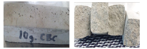 Otra propiedad a destacar de la FO modificada superficialmente con silano, es evitar la generación de grietas o fisuras (Soltan et al., 2017) en una matriz de cemento y en el material compuesto al ser expuesto a temperaturas por arriba de 100 °C, como se muestra en la Figura 10, donde podemos observar un material compuesto con una combinación de CPC-30R/CBC/FO sin tratamiento silánico, dando como resultado un material poroso después de un tiempo de fraguado de 28 días, esta porosidad se atribuye a la característica hidrofílica de la FO sin tratamiento silánico, la cual propicia una dimensión inestable que indica una dilatación y contracción de la FO después de un tiempo de fraguado, siendo un factor que permite la creación de grietas después de ser expuesto a temperaturas en un rango de 80-150 °C.