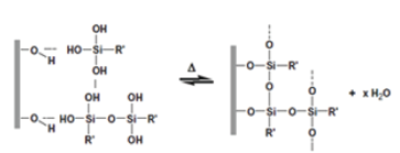 Una vez deslignificada la fibra, se sometió a un proceso de hidrólisis y condensación de silano, la modificación superficial de 10 g de FO se llevó a cabo en una solución de cantidades iguales, 246.25 mL, etanol y agua, posteriormente se agregaron 7.5 mL de silano Isooctyl-trimethoxysilane (ISO) o Trimethoxy-methylsilane (TRI), el pH de la disolución se ajustó a 3.5 con ácido acético en un potenciómetro Orión Star A211, el proceso transcurrió en un tiempo de 30 min con agitación constante en un equipo marca Bernant Mixer, series 10. Las fibras se secaron a temperatura ambiente durante 30 min; posteriormente se colocaron en una estufa a 60 °C durante 24 h (Rojo, 2011).