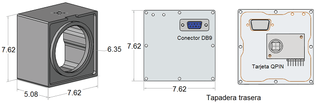 Como resumen del diseño del gimbal se muestran en la Tabla 1 los principales parámetros de diseño y como a partir de un modelo en 3D se construyó el prototipo de la montura de precisión gimbal (Figura 14). Se construyó de manera que el movimiento de búsqueda pudiera ejecutarse de forma manual o automática. La montura cuenta con varios elementos que cumplen funciones específicas, a continuación se detalla el funcionamiento de cada elemento. El cuerpo principal de la montura de precisión gimbal es una caja cuadrada con una tapa trasera desmontable, dentro de la caja, en la tapa trasera, va montado el fotodetector QPIN, que cuenta con un conector DB9 hembra para los cables de las señales del QPIN. Las medidas de esta caja tienen el suficiente espacio para dar margen a la distancia focal establecida anteriormente. La tarjeta del detector QPIN se colocó en la tapa trasera de manera que el área activa del QPIN quedara justo en el centro geométrico de la misma (Figura 15). Esta caja cuenta además con un orificio circular roscado en su cara anterior. En esta parte de la caja va un tubo roscado en el cual se acopló la lente y el seguro de la lente, Para obtener la rotación del gimbal respecto a los ejes X, Y se utilizaron 2 tornillos de ajuste fino que trabajan en conjunto con un sistema “cargado”. Al girar los tornillos de ajuste fino estos se mueven linealmente en el eje Z moviendo angularmente a la caja (Figura 16). El movimiento de rotación en estos ejes permite realizar la búsqueda del faro óptico. Al girar los tornillos de ajuste fino se lleva a cabo el movimiento de búsqueda del gimbal. Los tornillos de ajuste fino utilizados proporcionan un movimiento lineal de 1/80 de pulgada equivalente a 0.3175 mm lineales por cada vuelta realizada. La caja se mueve utilizando rodamientos en los 4 puntos de apoyo de cada eje (2 en el eje X y 2 en el eje Y).